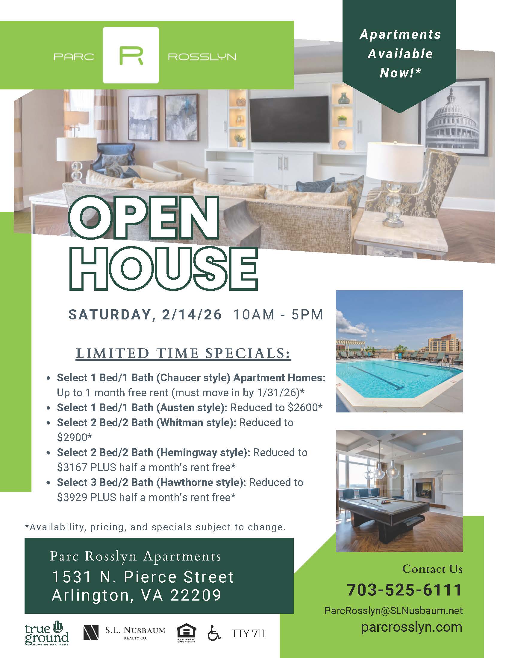 Parc Rosslyn is walking distance to Courthouse Station and Rosslyn Metro Station, minutes from Washington, D.C., the Pentagon, and the White House. Learn more about getting around Arlington by visiting Arlington's Car-Free Diet.